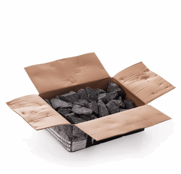 Sauna Soba Taşı, 10 kg’lık paketler halinde satılmaktadır. Taşlar, sauna sobalarının yanında standart olarak kullanılmaktadır.